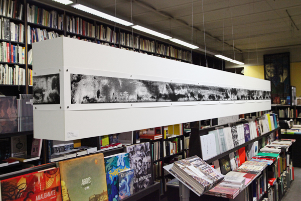 Dem Fotobuch sind – in Fortführung seines Buches „Elea“, das wir im Zentrum der Ausstellung bewundern können – zwei Leporellos beigegeben. Schaut man sich diese genau an, erkennt man fast mit einem Schaudern Ihre Poesie: Auf dem einen zeichnet sich noch die Maserung des hölzernen Schildes ab. Doch in dieser Maserung sind auch die Kleberreste eingeschrieben, die auf einmal wie eine symbolische Schlange erscheinen, und je länger man die Maserung betrachtet, um so mehr Tiere, Köpfe und Gestalten erscheinen ... Auf dem anderen Leporello – dessen „Bild“ vom „Architrav“ eines nüchternen, modernen Gebäudes stammt – erscheint bei näherer Betrachtung ein antikischer Reigen an Gestalten, wie wir sie von Tempelanlagen zu kennen meinen. Florian Sautter in seiner Ansprache zur Eröffnung der Ausstellung |