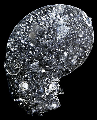 | KOSMOGRAFIEN – Bilder des Kosmos in alltäglichen Dingen Der Begriff Kosmografie taucht das erste Mal als Bezeichnung einer Weltbeschreibung auf, die im siebten Jahrhundert im italienischen Ravenna entstand. Im Mittelalter war die Kosmografie die Wissenschaft, die das Verhältnis des Menschen zur Erde und zum Weltraum erforschte. Aus ihr entwickelten sich die Vermessung, die Kartografie, die Geografie und die Astronomie. Manche Kosmografen wurden im frühen 16. Jahrhundert durch die katholische Inquisition als Ketzer verfolgt. Das griechische Wort Kósmos bezeichnete damals nicht nur das Weltall, sondern die ganze Weltordnung – gemäß seiner Grundbedeutung »Ordnung, Anstand, Schmuck«. Gráphein stand für Beschreibung, es umfasst aber eigentlich »die Kunst zu schreiben, zu zeichnen, zu malen usw.« [1] Das wird deutlich an anderen zusammengesetzten Wörtern wie Lithografie oder Fotografie. In diesem Sinne gebe ich dem Begriff Kosmografie nun eine neue Bedeutung und verwende ihn für meine Bilder. Es handelt sich dabei um Fotografien von den Spuren kosmischer Prozesse, die manchmal selbst zu Bildern des Kosmos werden. Es sind kosmische Selbstporträts. Anfang der 90er Jahre habe ich begonnen, mich fotografisch mit asphaltierten Flächen zu beschäftigen. Dabei entdeckte ich Sterne, Planeten und Kometen – einen ganzen leuchtenden Kosmos! Eigentlich einen Mikrokosmos der Missgeschicke aus verschütteter Farbe, verlorenen Zementkrümeln und danebengegangenem Felgenspray. Im richtigen Ausschnitt fotografiert verloren die Dinge ihre alltägliche Bedeutung, ihren Maßstab und ihre Zweidimensionalität. [2] Im Bildraum wurden sie zu etwas anderem, bekamen Tiefe und erschienen unermesslich groß. Sie wurden ein Spiegelbild des Makrokosmos. Seitdem untersuche ich alle möglichen Oberflächen meiner Umgebung. Neben erodierten Straßenbelägen und abgenutzten Fahrbahnmarkierungen interessieren mich auch frisch verlegte Gehwegplatten, verzinkte Bleche, verschrammte Müllcontainer, leere Kaffeebecher oder alte Salatschüsseln. [3] Auf vielen dieser unscheinbaren Flächen regt sich verborgenes Leben, in jedem Material steckt ein ganzes Universum unterschiedlicher Strukturen. Manche dieser gefundenen Bilder könnten auch aus den Laboren der Wissenschaft stammen, andere aus der Welt der Träume oder des Unbewussten. [4] Ich verstärke und bearbeite sie, lasse ihre dokumentarische Substanz aber im Kern unverändert. Der ursprüngliche Gegenstand jedoch wird meist vollständig transformiert und geht in der Komposition des Bildes auf. Die Materie wird transparent. [5] Eine der Grundfunktionen unseres Gehirns ist das Bemühen, die Erscheinungen des Kosmos zu erkennen und einzuordnen – und ihnen einen Sinn zu geben. Indem ich das Zufällige nach Bedeutung befrage, lote ich die Grenzen des Erkennens, des Wissens und der Fantasie aus. Meine Kosmografien sind Beschreibung und Ergebnis dieser Zwiesprache zwischen dem inneren und dem äußeren Kosmos. Zu den Kosmografien ist ein Katalog erschienen. nach oben |