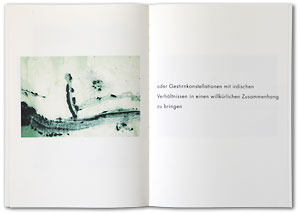 Johannes Groht das nutzlose Bemühen Kosmografien Die Auseinandersetzung mit dem Begriff "Kosmografie" wird zum Anlass, einen alten Lexikon-Eintrag mit Kosmografien zu illustrieren. Dabei bekommen die Bilder genau die Bedeutung, die ihnen der Text eigentlich abspricht. Ein ästhetisches, ironisches und überraschendes Spiel mit dem Zufall und dem "nutzlosen" Bemühen, "vermeintliche Aufschlüsse zur Kenntnis des innern Zusammenhanges des großen Weltganzen zu erlangen". Limitierte Auflage von 21 handnummerierten Exemplaren (+ 4 E. A.) Hamburg 2013, 21 x 29,7 cm, 56 Seiten, 33 farbige und schwarzweiße Abbildungen Offene Fadenheftung 50 € | 68 CHF (plus Versand: D 4 €, EU 12 €, CH 17 €, World 20 €) Einfach per E-Mail bestellen. Oder in den Buchhandlungen · Kunstbuchhandlung Sautter und Lackmann (Hamburg) · Buachlada Kunfermann (Thusis, GR, Schweiz) ansehen und erwerben. Auflage vergriffen – es gibt noch wenige Restexemplare eines Probedrucks |